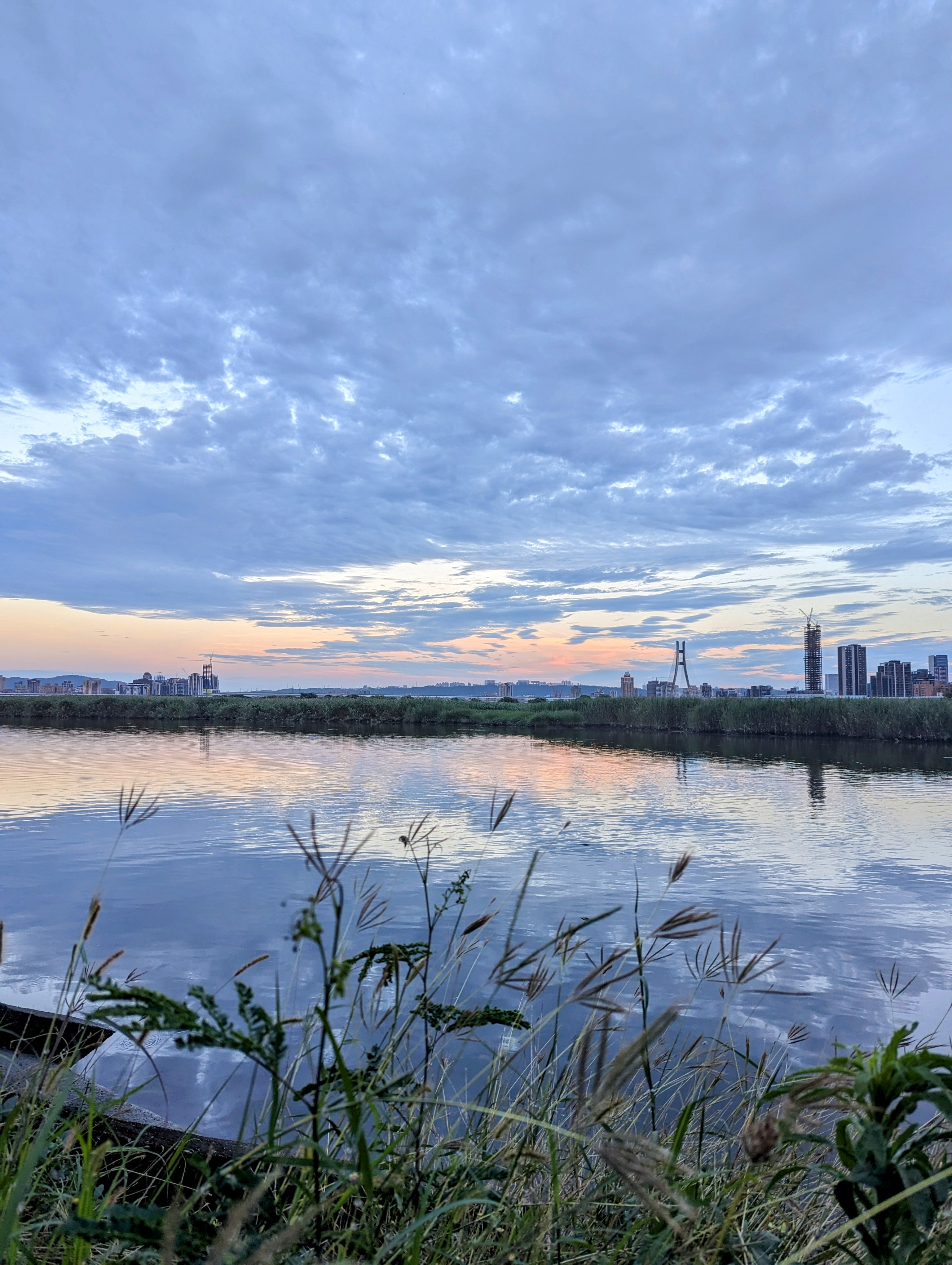 The sky whispers pink and soft blue.