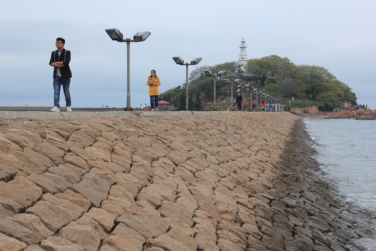 Walks under the white walls of the lighthouse that sits on Little Qingdao island. The lighthouse was destroyed during the Japanese bombardment in WW1 but was rebuilt to look out over Qingdao’s old town and keep ships clear of its shores.