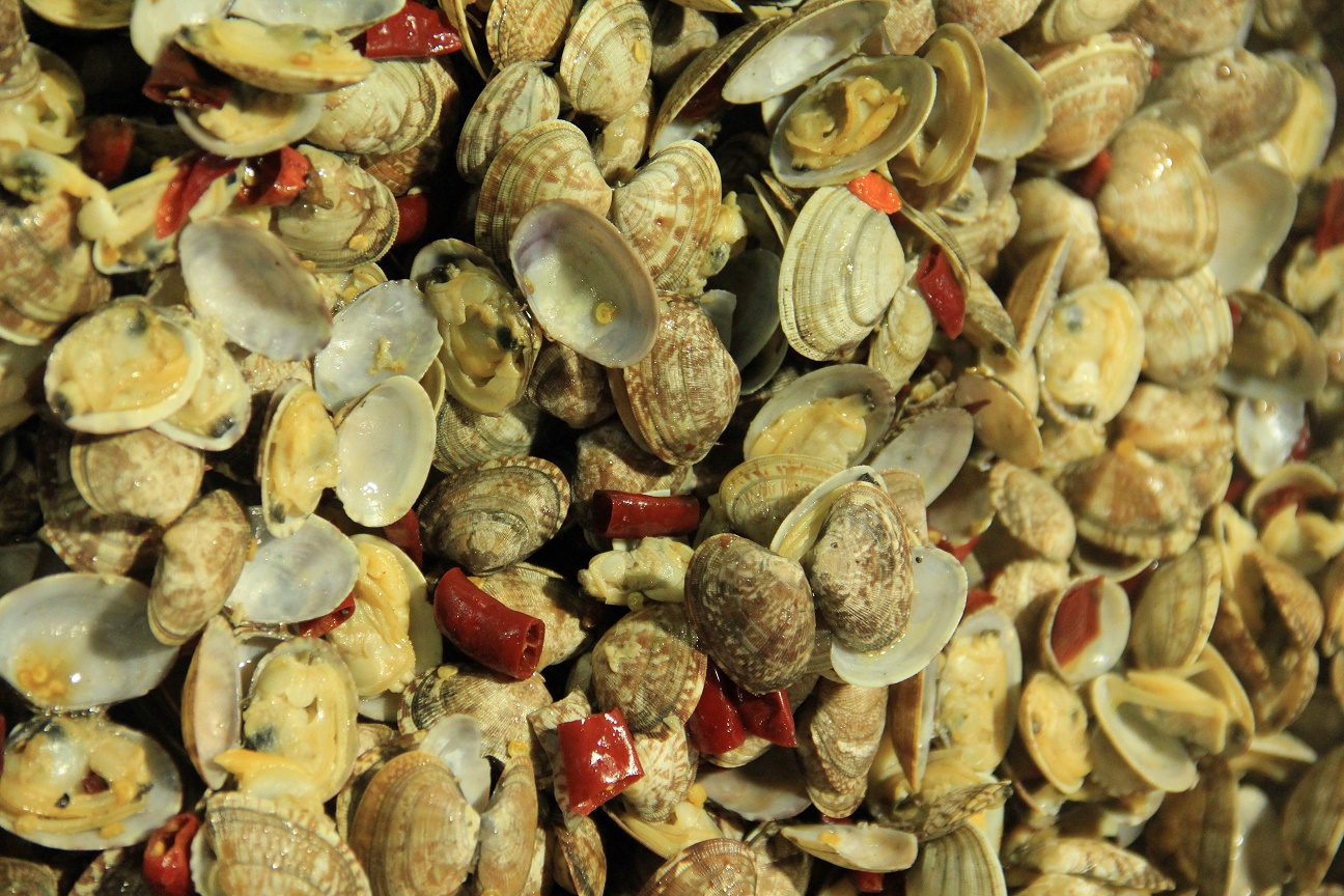 Walks past the endless little seafood restaurants serving up fresh seafood picked – by you – from tanks in front of the restaurant. When you pick a fish or octopus, the staff will beat it to death on the ground in front of you. We tried the clams at three different restaurants. Dabbed in garlic infused oil and topped with hot peppers, they were all delicious … for clams.