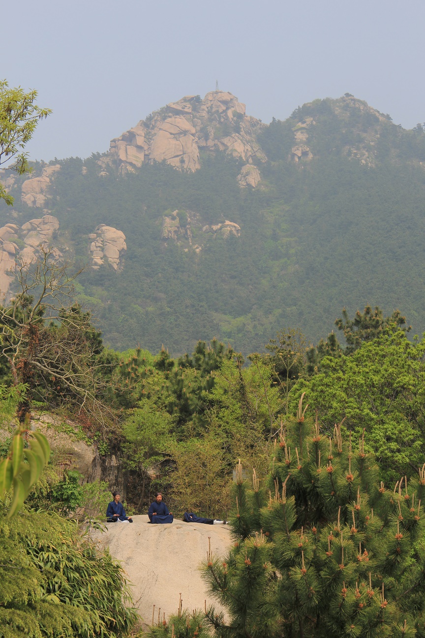 Monks meditating beneath the boulders. May 13, 2015May 13, 2015 / Jim Sojourner Monks meditating beneath the boulders at Taiqing Palace.