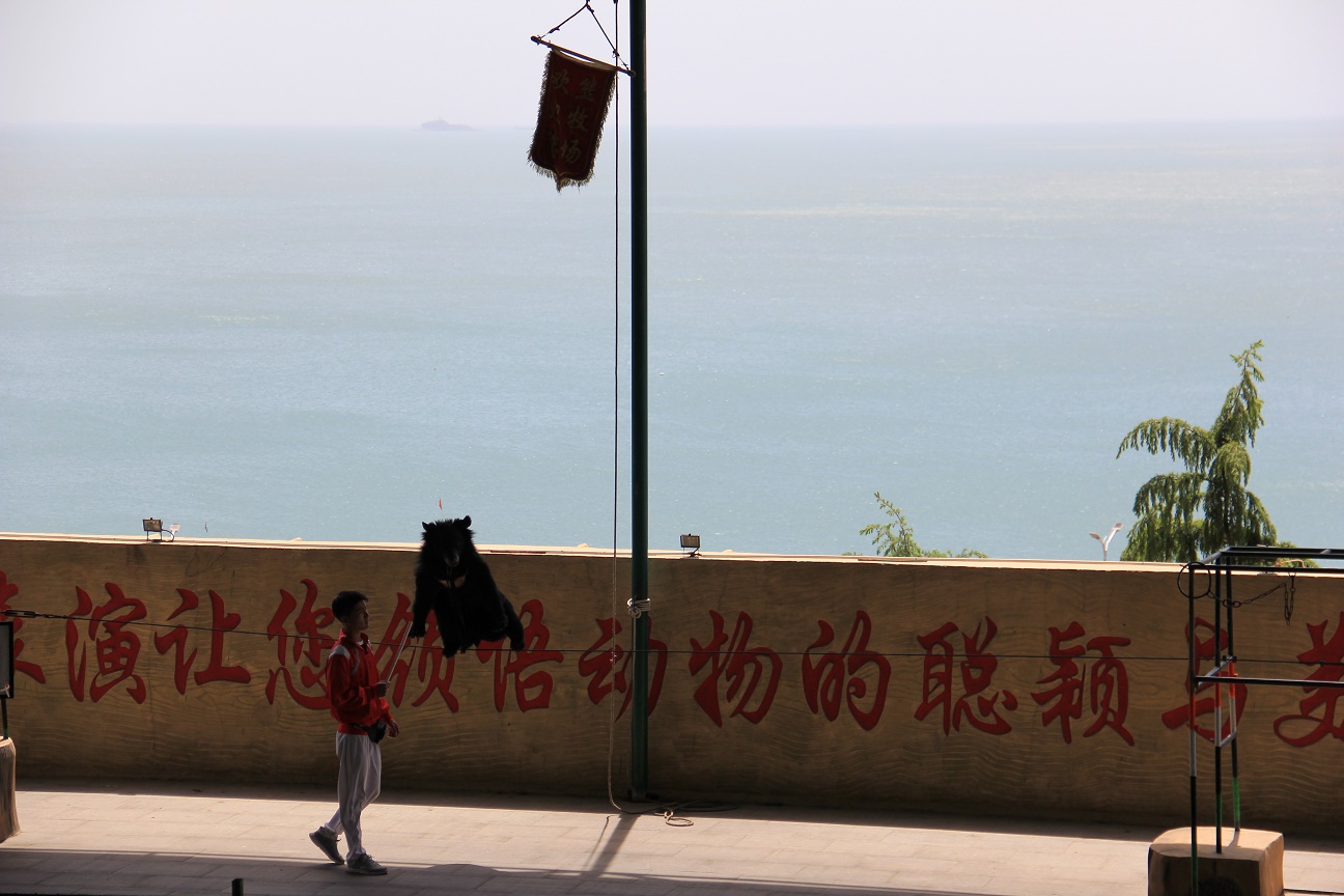 Bear walking a tightrope with an ocean in back. May 13, 2015May 13, 2015 / Jim Sojourner Bear walking a tightrope with an ocean in back.